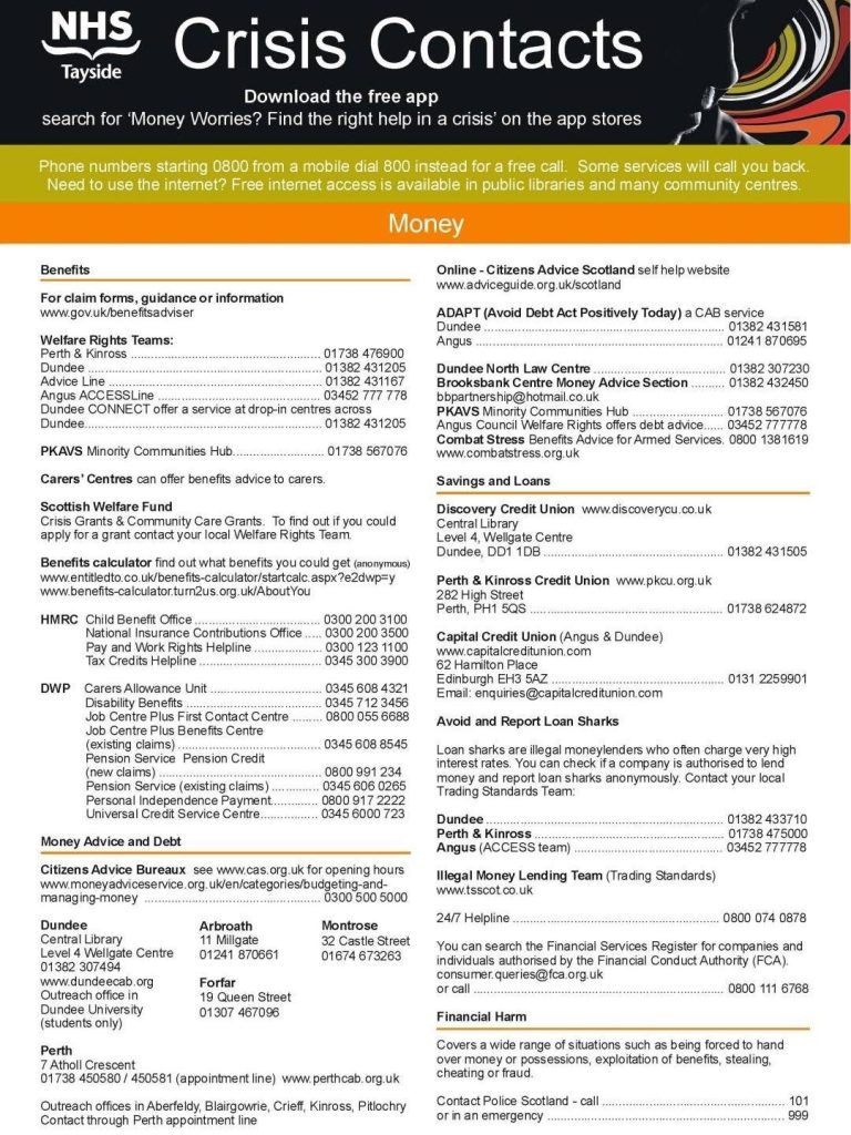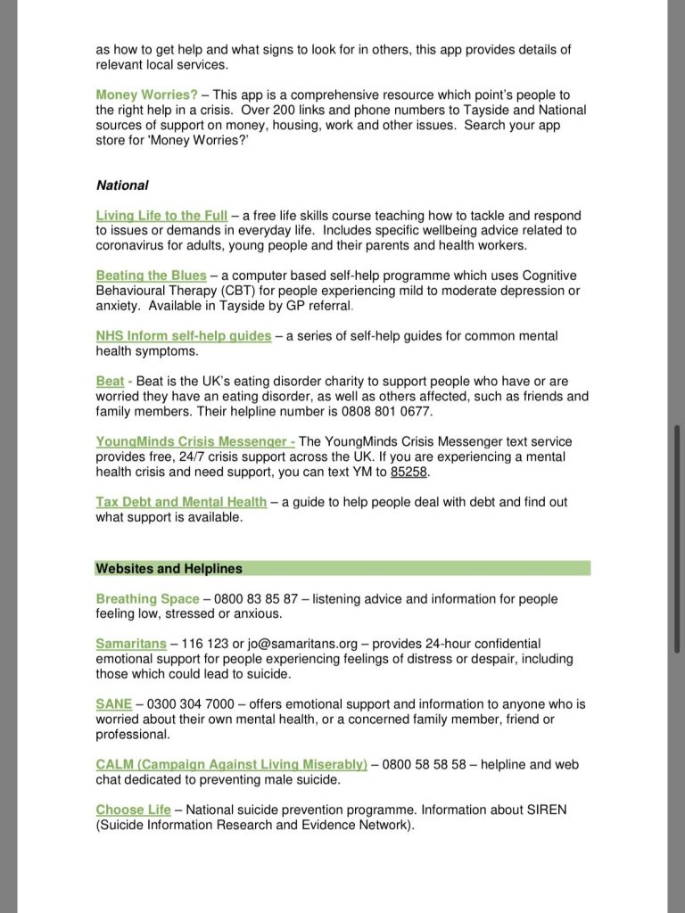 There are a number of contact numbers available for you if you need to talk to someone, feel down or needing help.